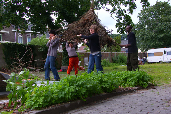 4 houses is a performed sculpture, in "De Lippekerkstraat" in Enschede 2007. This project is a colaborativ work together with Abdelmoniem Abdiella Hamza, Emily Wiliams and Yen Yi-tzu.