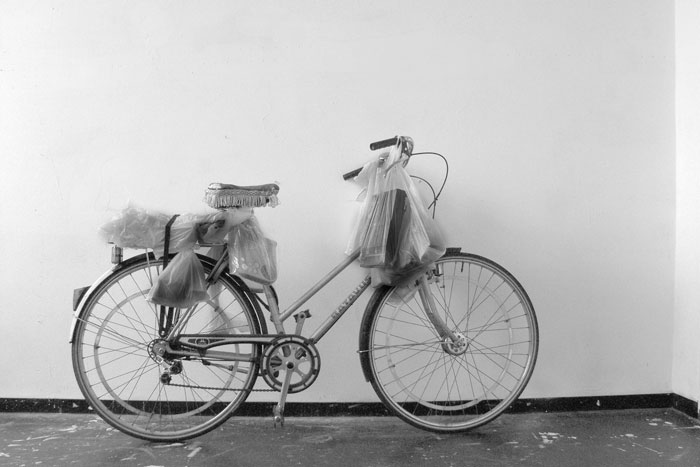 | Radau, bike, sounds, plastic bags, casette-recorders, tapes, Enschede 2007, Netherlands. |